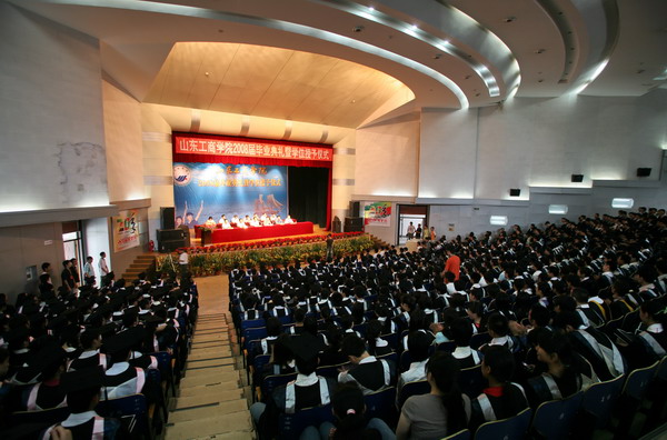 6月24、25日,2008届毕业生毕业典礼暨学位授予仪式分三场在我校大学生艺术中心礼堂隆重举行。校领导毕宪顺、刘全顺、杜文华、郭金创、盛国军、隋松智、孙祥斌及院长助理綦振平出席典礼,党(院)办、招生与就业指导处、团委、研究生处、学生处负责人及各二级学院院长参加典礼。典礼由盛国军副院长主持。