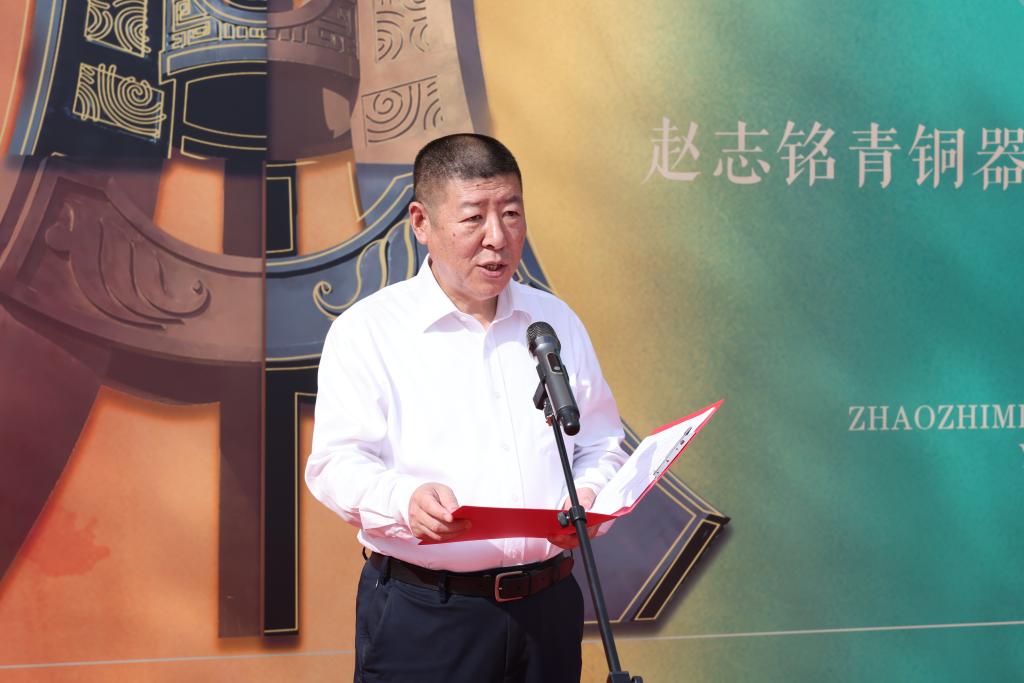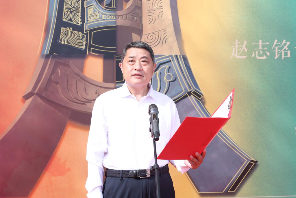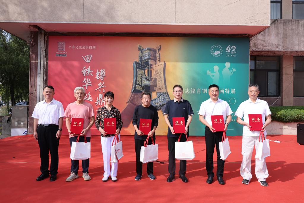 陶虎指出,青铜器是中华文明的璀璨瑰宝,“镈”“鼎”等国之重器,承载着中华民族的厚重历史与精神基因。学校标志性青铜雕塑“镈兴鼎盛”就以昂扬向上的设计理念,寓意着人才辈出,经济繁荣,国家昌盛。此次活动通过赵志铭先生的艺术创作,为我们搭建起历史与当下对话的一座桥梁。建校40年来,学校始终坚持以文化人、以美育人,此次展览既是学校践行“让文物活起来”文化理念的具体行动,也是一堂生动的“大思政课”。他希望通过这场展览,能够进一步涵养广大师生的文化自信与审美素养,推动中华优秀传统文化在校园落地生根。