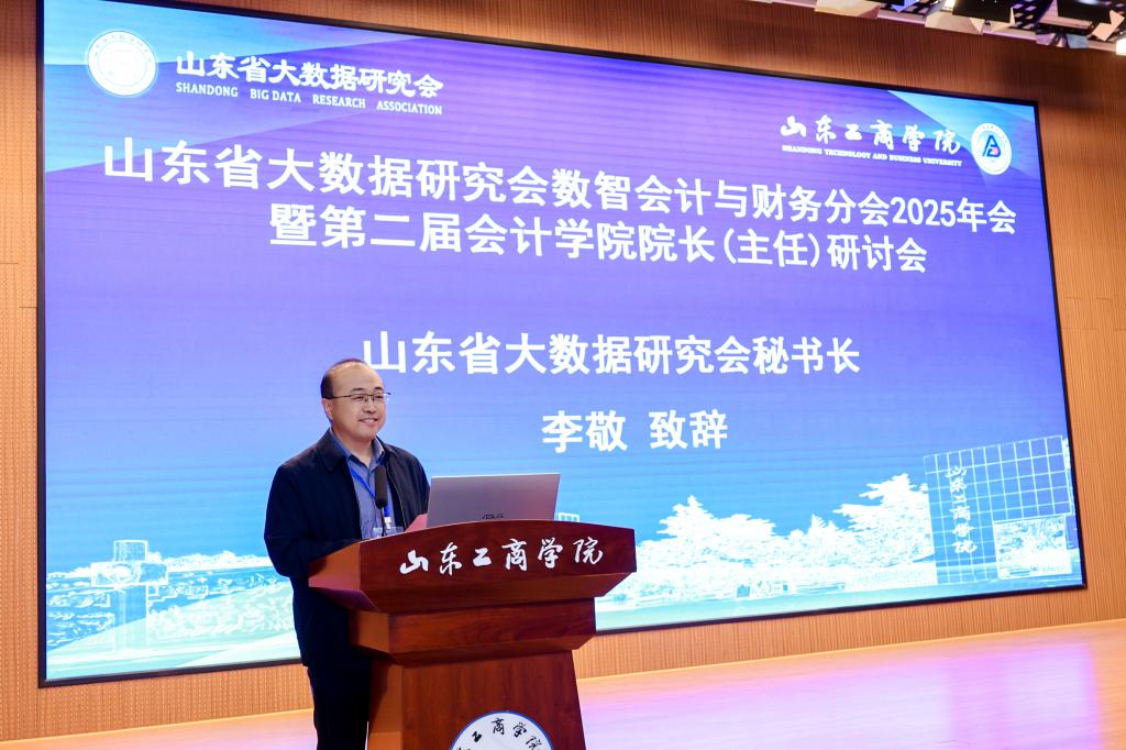 李敬对会议的召开表示热烈祝贺,并介绍了山东省大数据研究会的发展情况,希望与会专家能够充分分享智慧、碰撞思想,共同探索数智时代会计教育转型路径与财务理论创新,助力构建产学研用协同发展的良好生态。