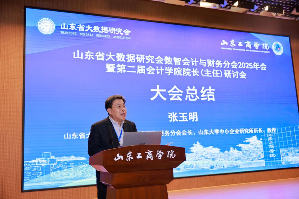 会上,下一届会议承办单位代表——齐鲁工业大学(山东省科学院)经济与管理学部主任、管理学院院长、金融学院院长李晔研究员致辞;山东省大数据研究会数智会计与财务分会会长、山东大学中小企业研究所所长张玉明教授作大会总结。
