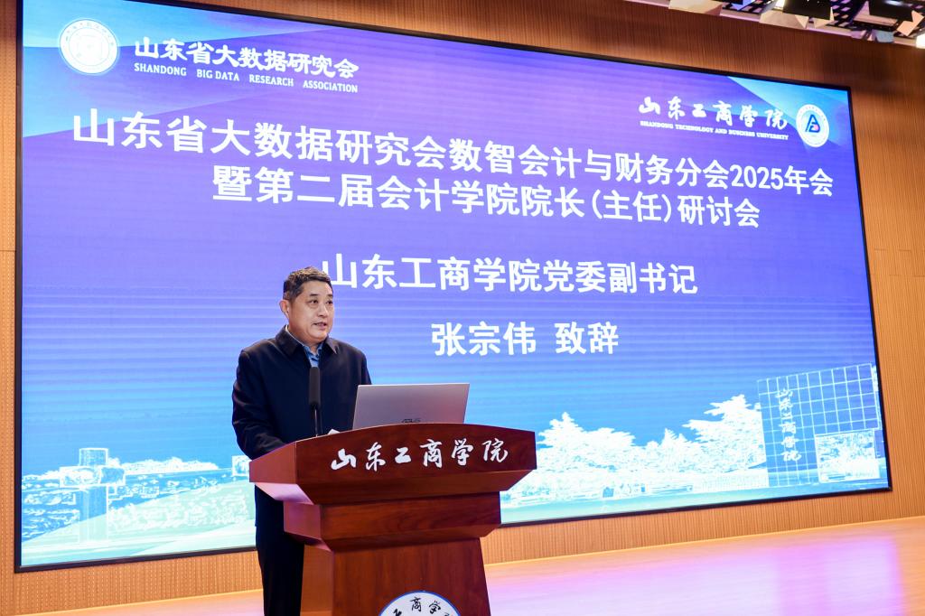 10月18日,山东省大数据研究会数智会计与财务分会2025年会暨第二届会计学院院长(主任)研讨会在山东工商学院举行。本次会议由山东省大数据研究会主办,山东工商学院会计学院承办,北京航天金税技术有限公司和高等教育出版社有限公司共同协办,并得到了《会计之友》《财务研究》等学术期刊的支持。来自四川大学、浙江工商大学、山东大学等40余所高校的100余名师生代表齐聚一堂,围绕数智会计与财务领域的热点问题展开深入研讨。学校党委副书记张宗伟、山东省大数据研究会秘书长李敬出席开幕式并致辞。山东省大数据研究会数智会计与财务分会副会长、学校会计学院院长桂良军主持会议。