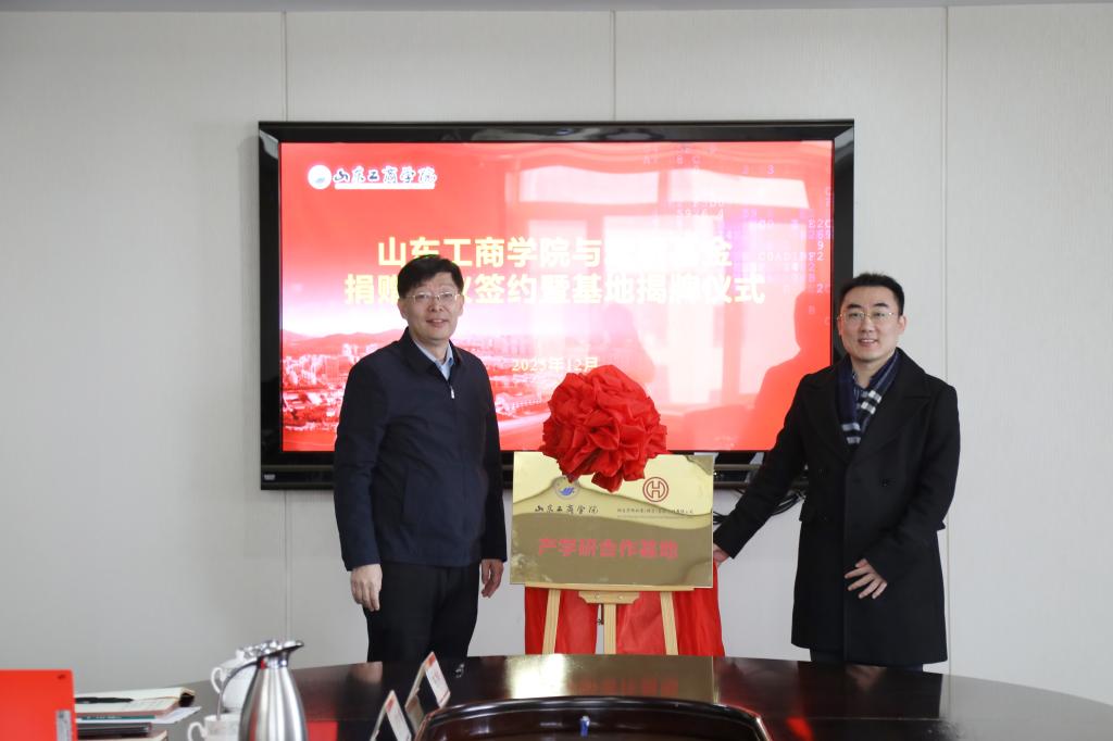 12月2日,学校与烟台宏桥私募(投资)基金管理有限公司举行奖学金捐赠协议签约暨产学研基地揭牌仪式。宏桥私募(投资)基金管理有限公司总经理王洋,合伙人、副总经理宋世杰,学校党委委员、副院长刘冰出席会议。