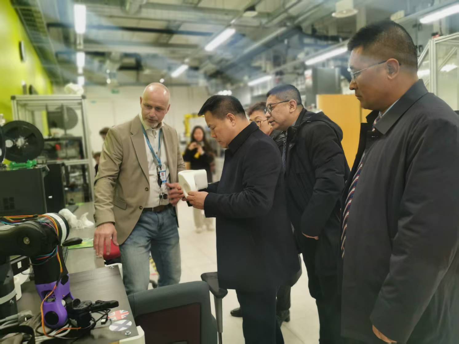 在萨塔昆塔应用科学大学,代表团与副校长迪摩•玛提拉、国际合作处处长阿里贝卡•凯努等举行会谈,双方分别介绍了国际交流项目和产教融合方面的经验,交流了人工智能与机器人方向的学生交换项目,并就教师互访研修、科研项目合作、暑期学校、国际研讨会等事宜进行了广泛而深入的探讨。在机电与人工智能学院院长马绍尔·万·格芬陪同下,代表团还考察了多个实验室与科研团队。在智能机器人研究中心,双方围绕共建联合实验室、人才联合培养等深度合作模式展开研讨。