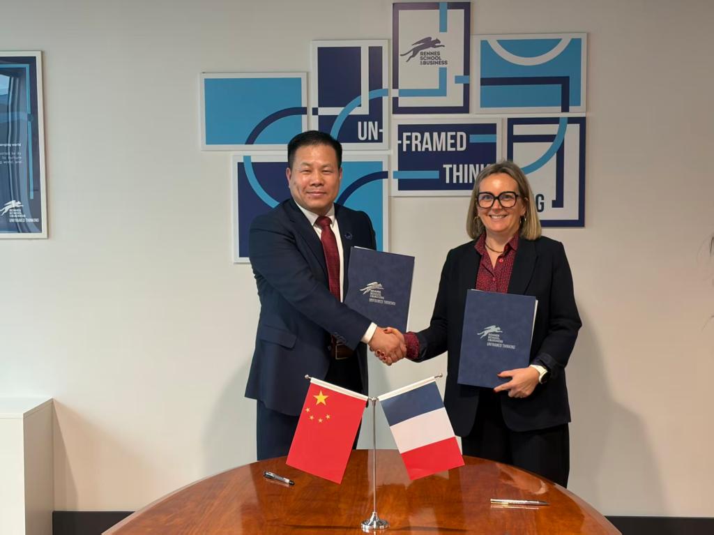 在雷恩商学院,代表团与副校长暨市场发展高级总监斯特凡妮・伊奥梅等进行会谈,李希亮介绍了我校的发展历史和办学特色,希望双方依托各自的商科优势,开展有的放矢的合作。双方探讨了商科类专业本硕连读3+2项目、硕士联合培养项目,并就暑期夏令营、终身教育资源共享、职业资格认证课程开发等达成一致。期间,两校签署了合作备忘录,商定将继续细化合作项目,签署项目实施协议。