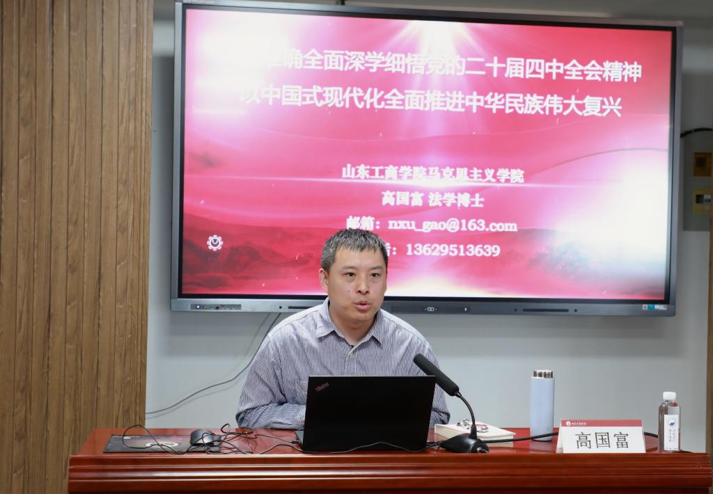 山东省高校学习贯彻党的二十届四中全会精神青年师生巡讲团成员、马克思主义学院教师高国富以《完整准确全面深学细悟党的二十届四中全会精神 以中国式现代化全面推进中华民族伟大复兴》为题作专题辅导报告。