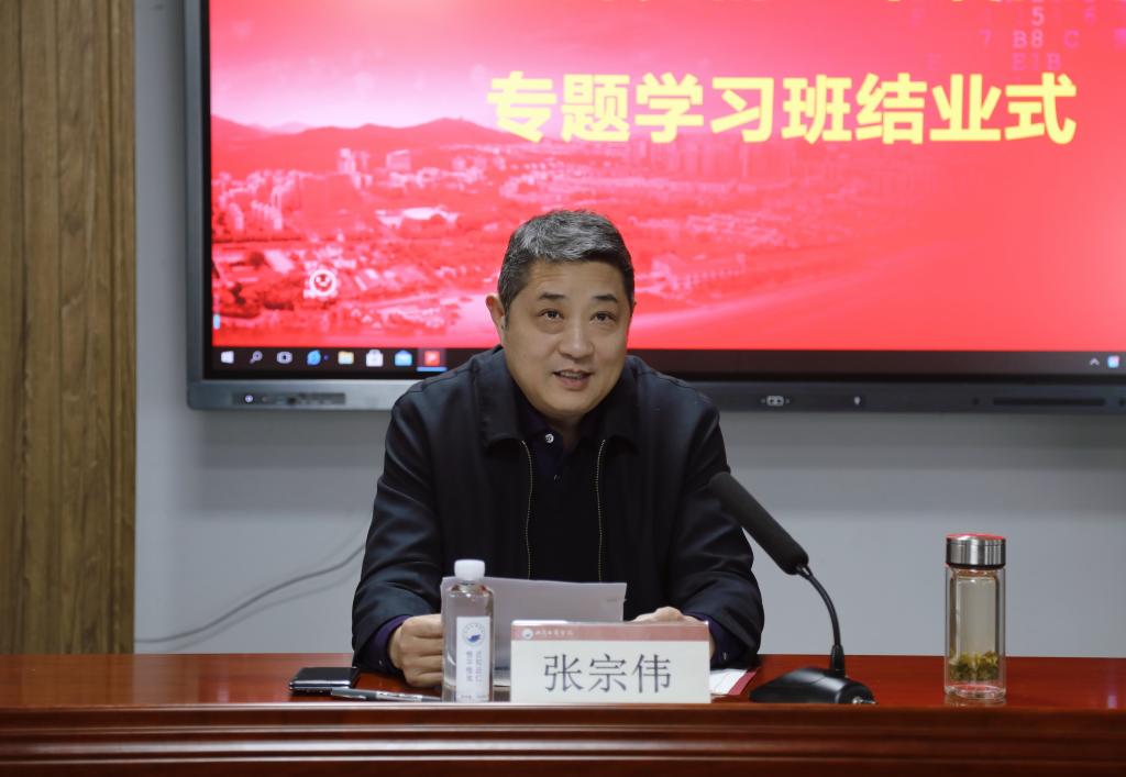 张宗伟在总结讲话时指出,本次专题学习班取得了务实成效,对于推动全校学习贯彻党的二十届四中全会精神发挥了示范带动作用。他强调,学习好、宣传好、贯彻好党的二十届四中全会精神,是学校当前和今后一个时期的重大政治任务,要在深学细悟、笃行实干上持续用力。一要牢牢把握立德树人根本任务,筑牢为党育人为国育才思想根基;二要主动融入区域发展战略布局,彰显服务地方经济社会发展贡献度;三要聚焦内涵式高质量发展主线,提升办学治校能力水平;四要强化责任担当狠抓落实,确保党中央决策部署落地见效。