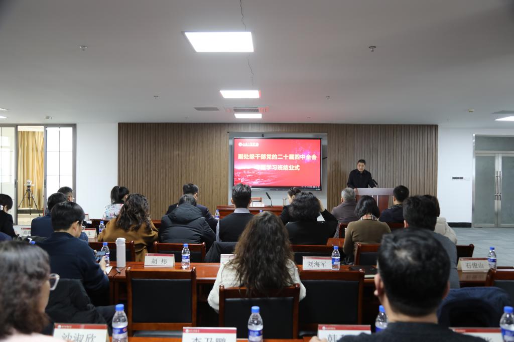 根据省委教育工委工作要求,近日,学校举办副处级干部党的二十届四中全会精神专题学习班。党委书记郭建国作开班动员及宣讲报告,党委副书记张宗伟主持结业式并讲话。
