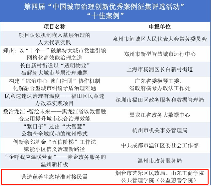 近日,由北京大学城市治理研究院与新华数字政府研究中心联合主办的第四届中国城市治理创新优秀案例评选大会在北京大学政府管理学院召开,大会旨在系统总结、推广全国城市治理创新先进实践,为推进中国特色城市治理现代化提供有力支撑。学校公共管理学院教师吴波参与撰写的《营造慈善生态 精准对接民需》案例入围“十佳案例”。