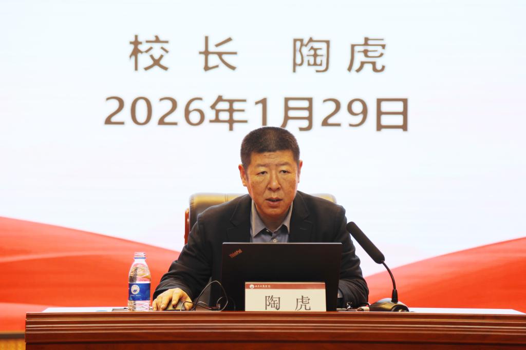 陶虎在报告中系统总结了学校2025年的工作成绩,并对2026年重点任务作出部署。他强调,2026年学校要全面贯彻党的教育方针,落实立德树人根本任务,全面加强党的领导,深化教育教学改革,推进学科专业优化,强化有组织科研,拓展开放办学格局,并以“学院办大学”改革为牵引,激发办学活力,确保全年各项目标任务落到实处,奋力开创特色鲜明高水平财经类大学建设新局面。