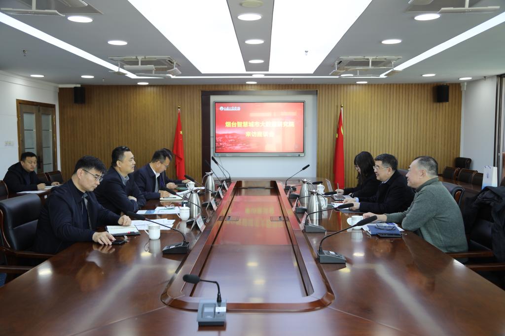 3月10日上午,烟台智慧城市大数据研究院书记王晓森一行来校调研交流。学校党委书记郭建国出席座谈会并讲话,党委委员、副院长杜曙光出席会议。