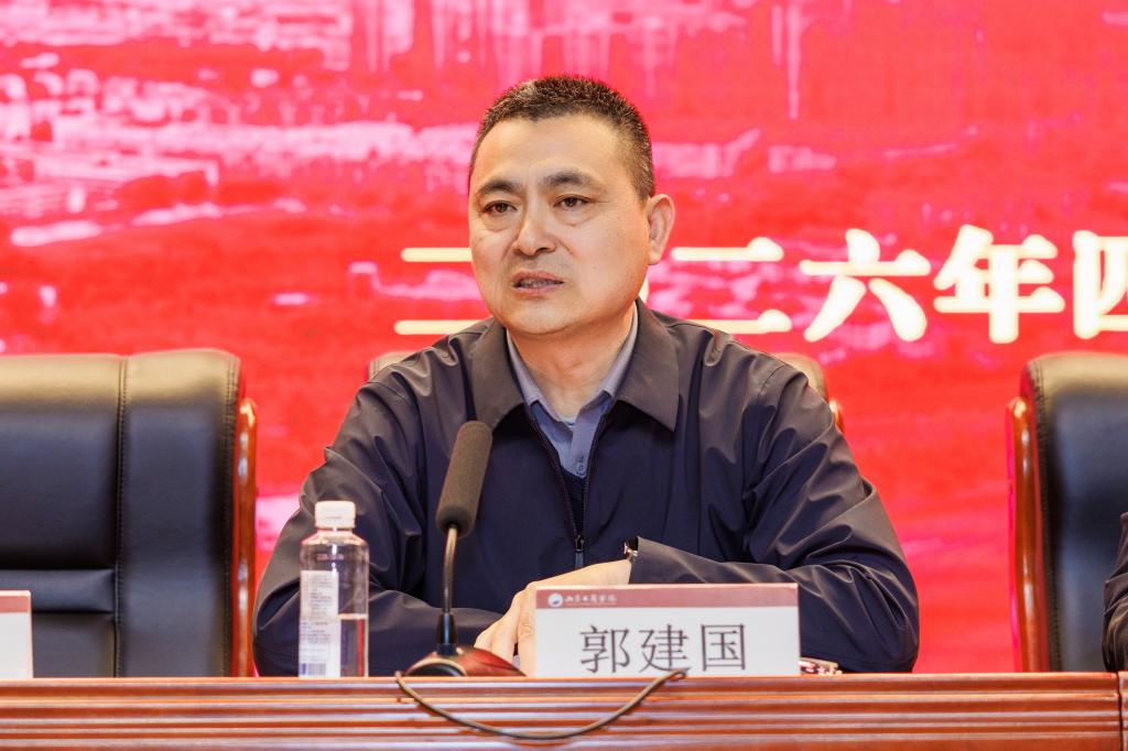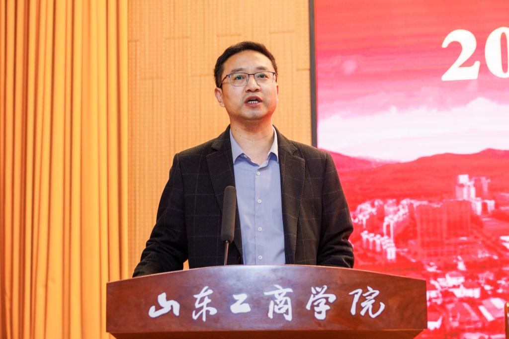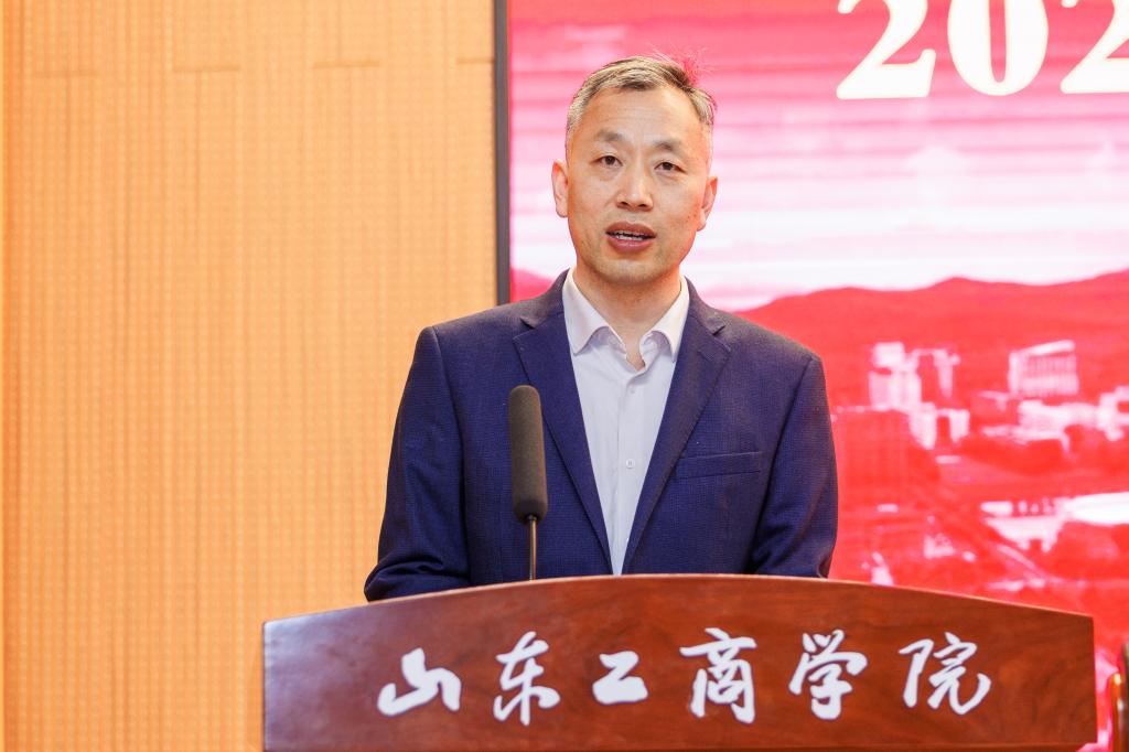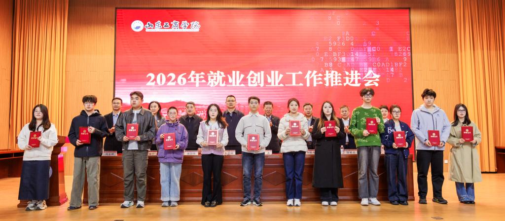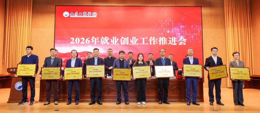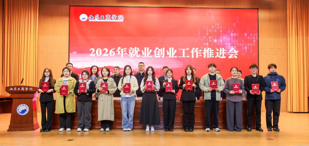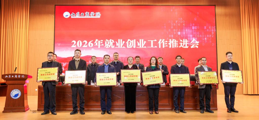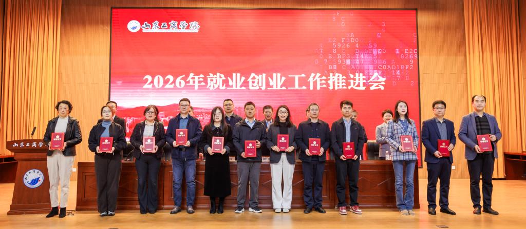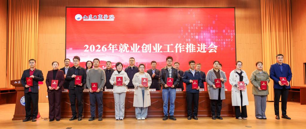 郭建国在讲话中对学校2025年就业创业工作取得的成绩给予充分肯定,并围绕贯彻落实教育部、山东省2026届高校毕业生就业创业工作会议部署要求,扎实推进学校2026年就业创业工作提出三点要求:一是深化思想认识,深刻把握就业创业工作的重大意义。要提高政治站位,扛牢稳就业政治使命,以高质量就业成果反哺地方经济社会建设,在服务大局中彰显学校的办学价值与使命担当;要锚定教育初心,强化价值引领,紧扣新时代青年成长成才要求,坚持系统观念,落实立德树人根本任务;二是强化责任意识,以钉钉子精神将就业创业工作抓实、抓细、抓出成效。要强化全局统筹,压实全员责任链条,始终秉持“严真细实快”的工作态度,把履职尽责贯穿就业创业工作谋划、推进、落实全过程各环节。要聚焦关键群体,严守纪律规矩,狠抓工作落地见效,构建上下贯通、齐抓共管、协同高效的就业工作推进体系和创新创业人才培养体系。三是聚焦靶向施策,全力推进毕业生高质量充分就业。要深化校企协同,拓展就业创业渠道,既“送毕业生上岗”,也“引创业资源入校”。要强化服务保障,提升就业创业效能,构建线上线下相结合的全方位就业创业服务体系,为毕业生提供便捷、高效的支持。要加强兜底帮扶,激发就业创业动力,建立健全家庭困难毕业生动态帮扶机制,开展精准帮扶。
