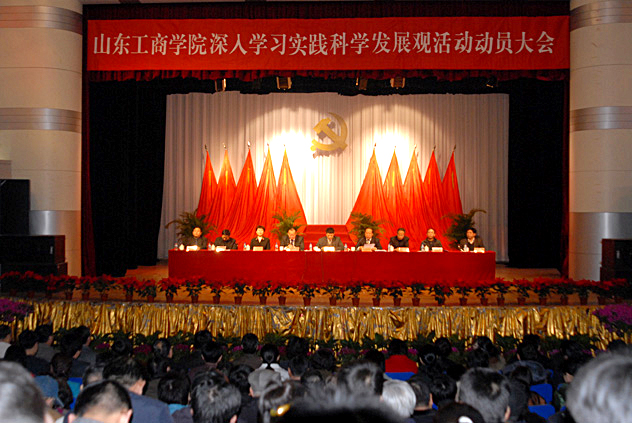 3月16日下午,我校在艺术中心礼堂隆重召开深入学习实践科学发展观活动动员大会,对我校开展深入学习实践科学发展观活动进行全面动员和部署。省属高校学习实践活动第四指导检查组组长程清钧出席大会并讲话,副组长冷健及成员王建华、魏建国出席会议,院长刘全顺主持大会,党委书记魏金陵作动员报告。学校党政领导、全体党员、民主党派负责人、非党副处以上干部、入党积极分子代表等1100余人参加大会。