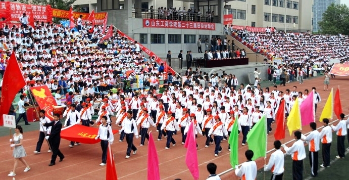 由各二级学院学生组成的和各党总支(直属党支部)教职工组成的方块队,迈着整齐的步伐,伴随着雄壮的乐曲,依次通过主席台接受检阅。刘全顺院长宣布山东工商学院第23届田径运动会开幕。