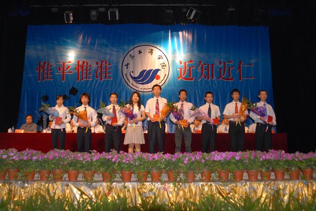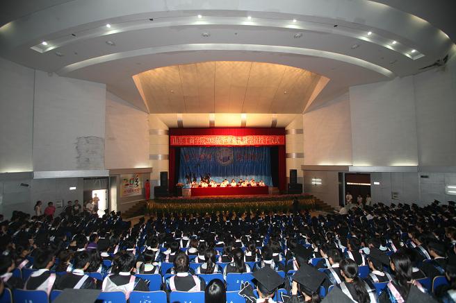 6月25日,2009届毕业生毕业典礼暨学位授予仪式分两场在我校大学生艺术中心礼堂隆重举行。校领导魏金陵、刘全顺、郭金创、盛国军、隋松智、孙祥斌及院长助理王广成、綦振平出席典礼,党(院)办、教务处、招生与就业指导处、团委、研究生处、学生处负责人及各二级学院院长参加典礼。典礼由盛国军副院长主持。