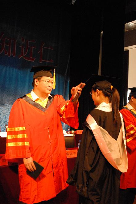 郭金创副书记首先宣读了2009年省级优秀毕业生名单及“西部计划”志愿者名单;校领导分别为山东省优秀毕业生代表和“西部计划”志愿者颁奖;2000余名获得学士学位的同学身穿学位服在欢快、激昂的音乐声中神采奕奕地走上主席台,校领导为每一名学生正冠拨苏,授予学位,并同他们合影留念,现场气氛隆重、热烈、振奋人心。