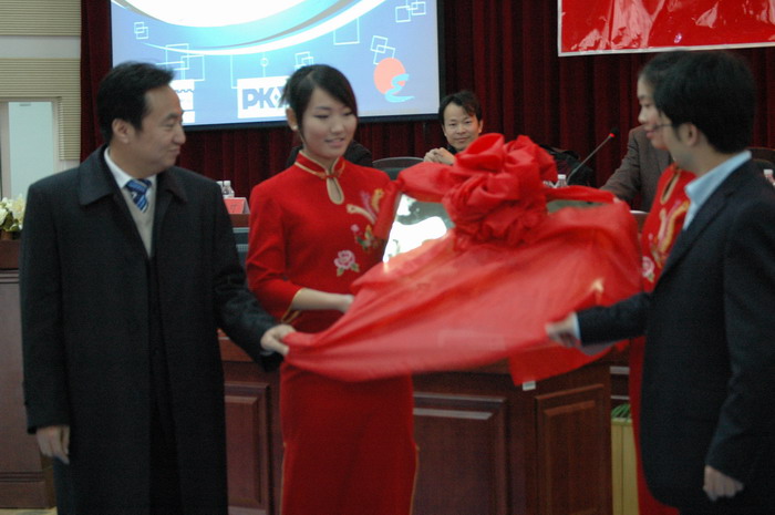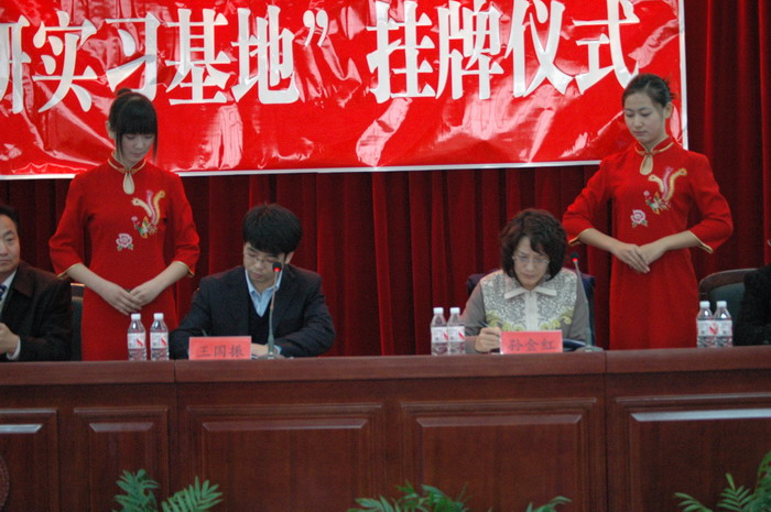 在热烈的掌声中,管理科学与工程学院党总支孙金红书记和王国振先生代表双方签署了“PKPM合作协议书”;王广成校长助理和王国振先生共同为 “PKPM产学研实习基地”揭牌。(作者:逄卉一编辑:李红)