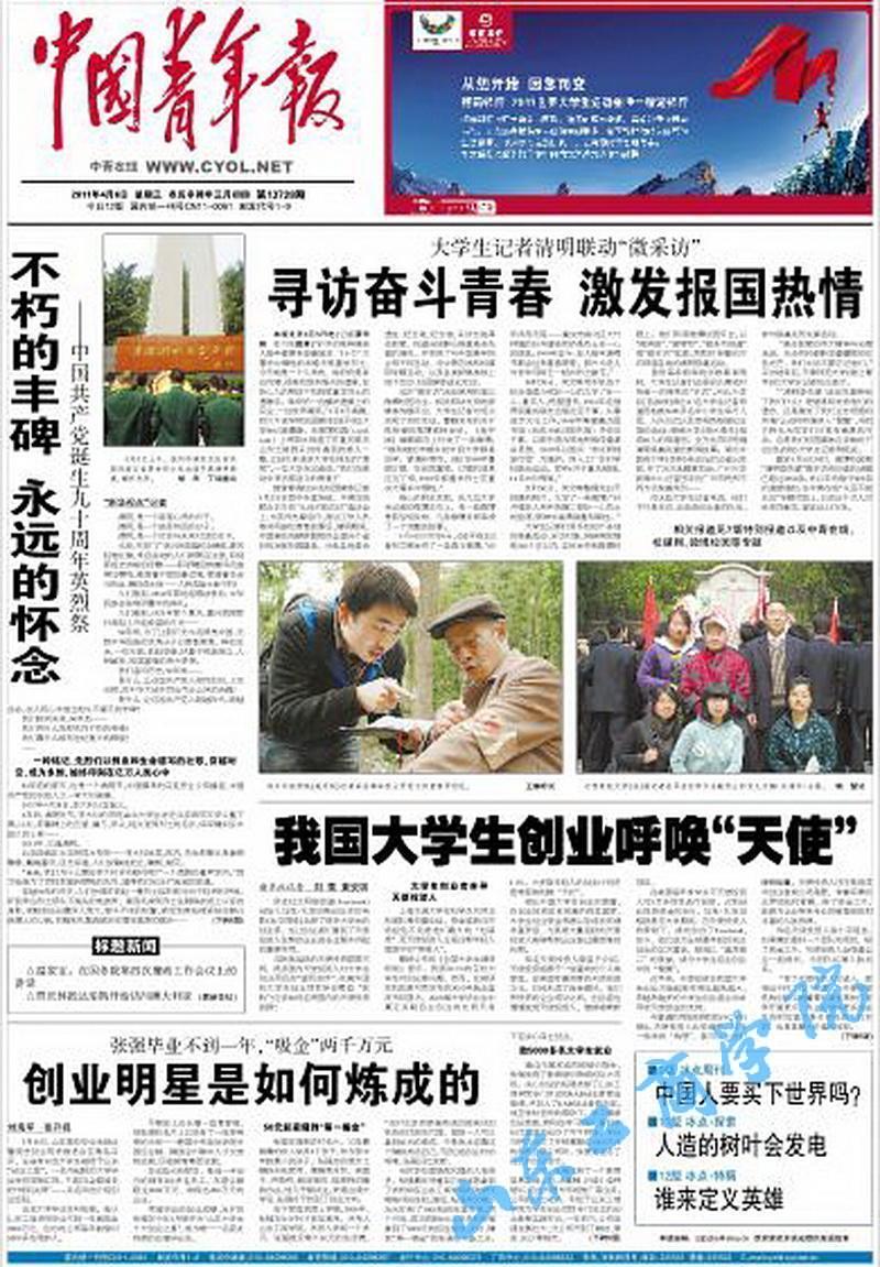 我校“创业之星”张强,数学与信息科学学院06级学生,2010年6月毕业。今年3月被评为“山东大学生十大创业之星”,成为山东烟台高校中唯一获奖的大学生,也是唯一一名获此殊荣的应届毕业生。他的事迹在社会和大学生中引起强烈反响。2009年10月7日《中国教育报》刊登了刘海军《想创业,别瞧不起“小活”》,2011年4月6日《中国青年报》又在一版刊登了刘海军、张开祝采写的《大学生毕业不到1年“吸金”2000万,创业明星是如何炼成的》通讯,详细介绍了张强的事迹。(作者、编辑:李红)