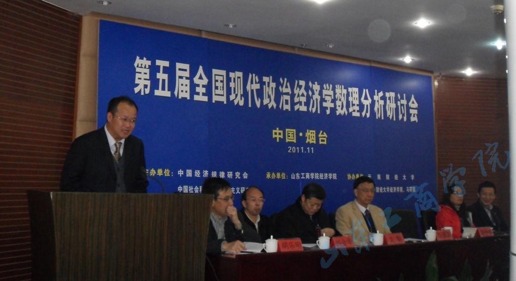 为进一步促进政治经济学学科发展,深化对现代政治经济学数理模型方面的研究,加强国内外学者关于马克思主义经济学的交流,11月11日——13日,由中国经济规律研究会、中国社会科学院马克思主义研究院主办,山东工商学院经济学院承办,云南财经大学、上海财经大学协办的“第五届全国现代政治经济学数理分析研讨会”在我校召开,此次会议中心议题是讨论中级与高级政治经济学中数理模型的运用,以及教材的编写等问题。