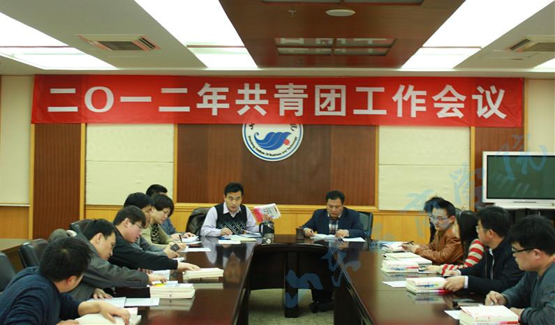 会议由团委书记李新瑾主持。会上,团委首先传达了2012年团省委工作要点以及全省学校共青团工作会议精神,并结合学校党政工作要点和团省委工作要点对我校2012年共青团工作要点进行了详细解读。团委还就主题教育、新儒商学习、学习型团组织建设、系统化建设、社团基地建设、青年马克思主义者培养工程、牟平合作协议落实、青年就业创业见习基地考核、青年联合会筹建以及团代会筹备等十五项工作进行了重点部署,并就组建重点工作推进小组、加强工作实践研究、构建资源支持体系等措施做了详细解释。随后,与会人员提了意见和建议。