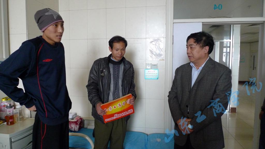 4月10日,隋松智副院长在体育部主任刘英辉、学生处处长赵纪新等陪同下,前往莒南县人民医院探望并慰问了体育部身患骨癌的同学滕春明及其家人,送上了全校师生对滕春明的问候和关怀。