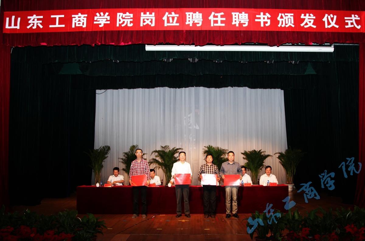 5月22日,我校在艺术中心礼堂隆重召开岗位设置与聘用工作总结大会暨聘书颁发仪式,校领导刘全顺、郭金创、盛国军、隋松智、杨中山、马东太出席会议,并为全校1137名岗位受聘人员颁发了聘书。会议由党委副书记郭金创主持。