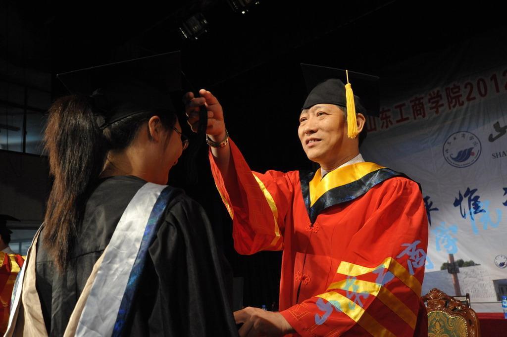 院长刘全顺为毕业生拨正流苏