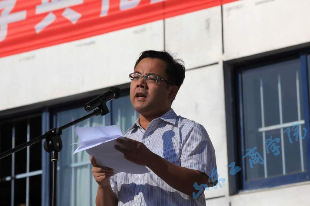 开学典礼上,教师代表——工商管理学院的杜恒波老师,在校生代表——经济学院的刘俊宏同学,新生代表——计算机科学与技术学院的滕荔娜同学分别作了发言。