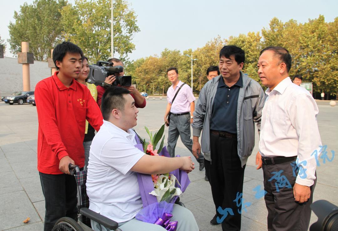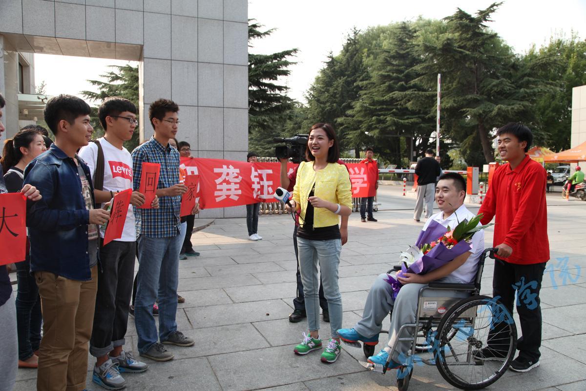 金秋十月,丹桂飘香,我校中加学院学生、被誉为当代青年学习的楷模、山东十大好人、山东见义勇为优秀分子、山东第四届道德模范的龚钰犇同学在父母的陪伴下于10日来校报到。党委副书记郭金创、副院长隋松智以及宣传部、学生处、团委、中加学院等部门负责人在学校东大门迎接他们全家。齐鲁电视台、枣庄电视台、齐鲁晚报、烟台日报等9家媒体来校报道他的事迹。郭金创副书记接受了媒体记者的采访。