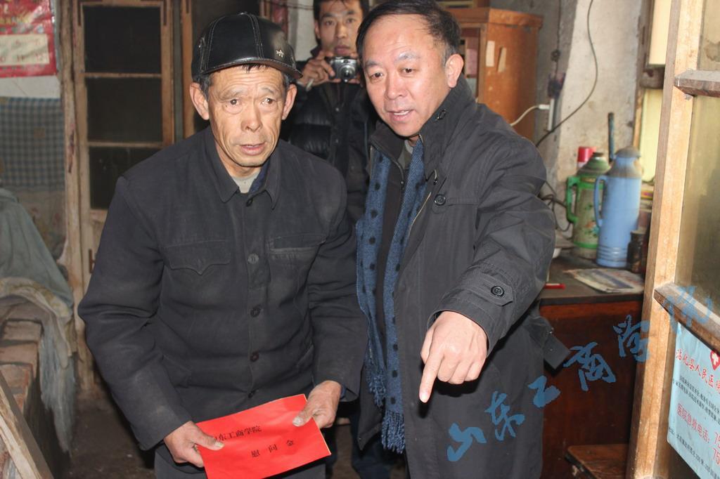 1月17日,校党委副书记郭金创在校党委组织部负责人等同志陪同下,来到我校“第一书记”帮包的滨州沾化县大高镇中韩村、南耿村、孔家村,走访慰问了6户困难家庭,为他们送去了全校党员干部捐赠的600元慰问金及食用油、大米等慰问品,表达了学校全体师生员工的亲切慰问和节日的祝福。