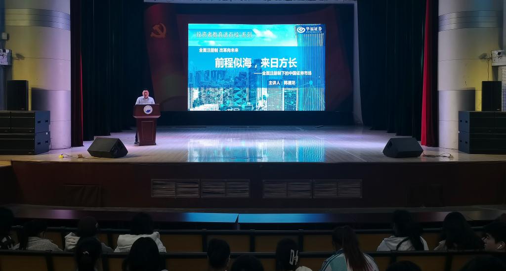 华福证券山东分公司烟台营业部投资者教育专员韩德龙,在大学生艺术中心向一千余名师生做了题为《前途似海,来日方长——注册制下的中国证券市场》的宣讲。就如何正确认识证券市场、中国证券市场的结构、注册制下的中国证券市场面临的发展机遇等问题做了专门分析解读。专题沙龙在山商书苑举行,韩德龙结合有关工作案例和自身从业经验,重点围绕社会对财富管理人才的需求状况、证券行业从业人员所需的能力素质、大学生职业发展力培养等问题,与团干部、学生代表做了深刻交流和现场互动。团委负责人主持活动并向韩德龙颁发“财商教育青春成长导师”聘书。