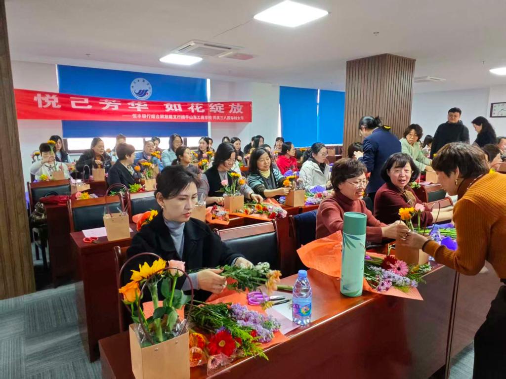为庆祝第116个“三八”国际妇女节,3月10日下午,由学校工会、妇委会,财务处与恒丰银行解放路支行联合举办的“芳华绽放·智享未来”——“三八”国际妇女节插花活动在办公楼7楼会议室举行。
