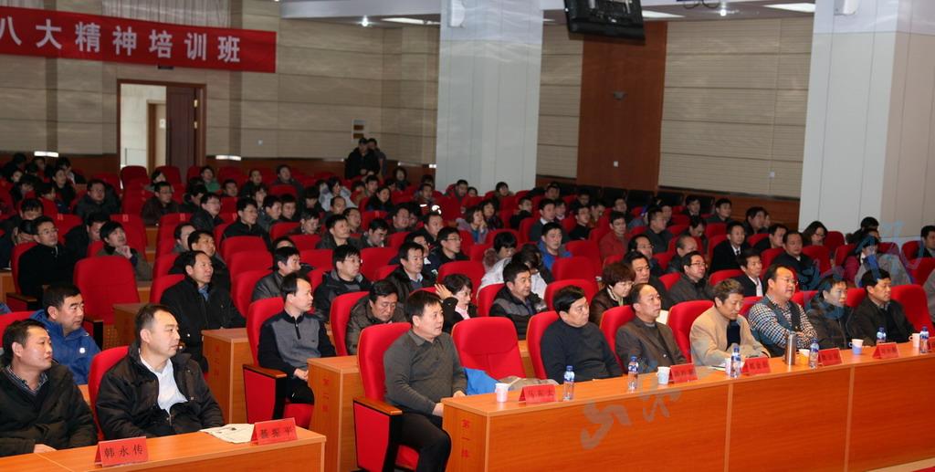 党委书记魏金陵、院长刘全顺、党委副书记郭金创、副院长盛国军、隋松智、杨中山、纪委书记马东太出席报告会。报告会由郭金创主持。全校副科以上干部、思想政治理论课教师、辅导员等300余人参加了报告会。