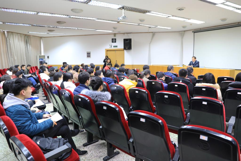 12月12日,院长、党委副书记谭秀森以《把握新时代 展现新作为》为题,在图书馆报告厅为所在党支部及联系学院党员上党课。
