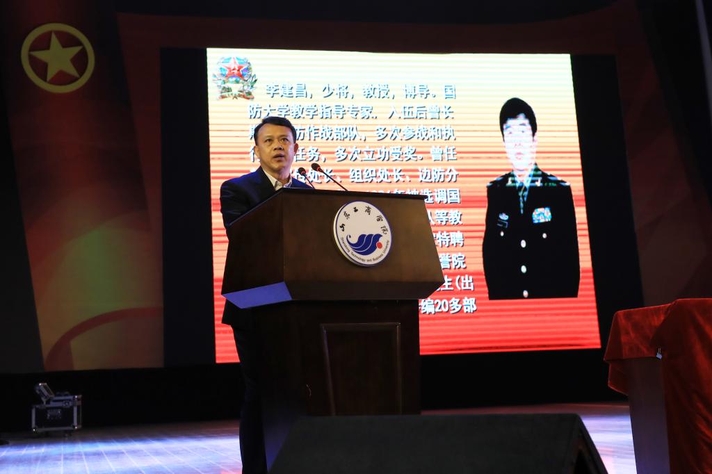 12月25日下午,国防大学教授、博士生导师李建昌少将《新形势下意识形态领域斗争面临的挑战及对策》专题报告会在大学生艺术中心一楼礼堂举行。院长杨同毅、党委副书记郭金创出席报告会,副院长刘向锋主持。
