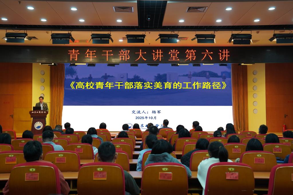 为引导青年干部准确把握美育工作的核心要义与实施路径,全面提升学校美育工作水平,着力构建“五育并举”高质量人才培养体系,10月24日下午,学校举办“青年干部大讲堂”第六讲,党委学生工作部、武装部部长杨军受邀作专题辅导。